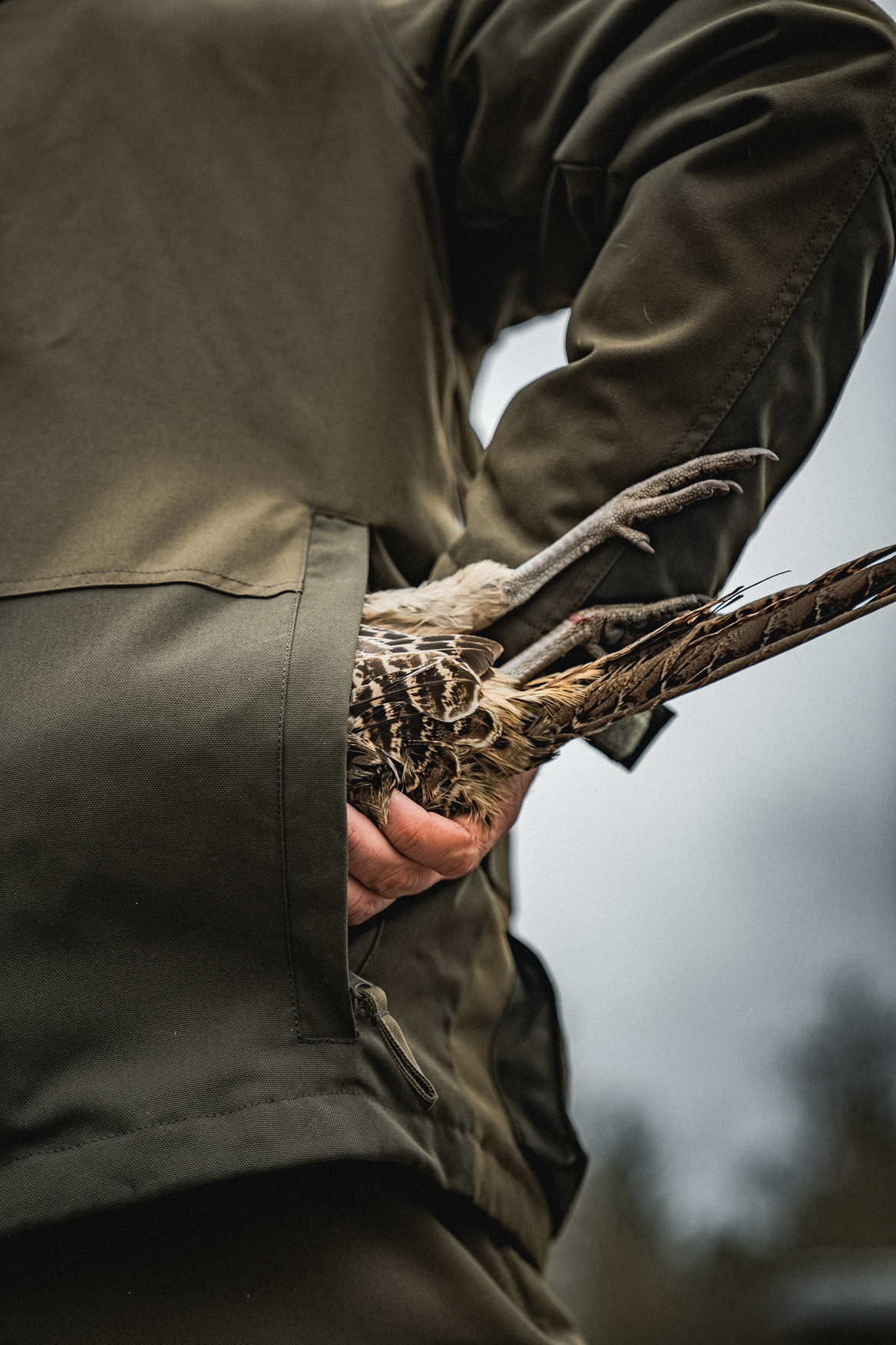 Den aftagelige og justerbare hætte giver fleksibilitet, mens de mange funktionelle lommer – herunder radiolommer, patronholder og en stor harelomme – gør jakken ideel til drivjagt. Anti‑slip print på skuldrene holder riffelslyngen sikkert på plads, og ventilationslynlåse under armene giver ekstra åndbarhed under aktivitet. Med stormmanchetter, justerbar bund og et anti‑blødgørende for får du en jakke, der kombinerer komfort, slidstyrke og funktionalitet. Perfekt sammen med Trax‑bukserne og Trax‑kasketten.